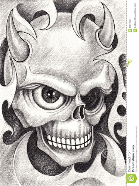 Art Skull Devil Tattoo. Stock Illustration - Image: 66271734
